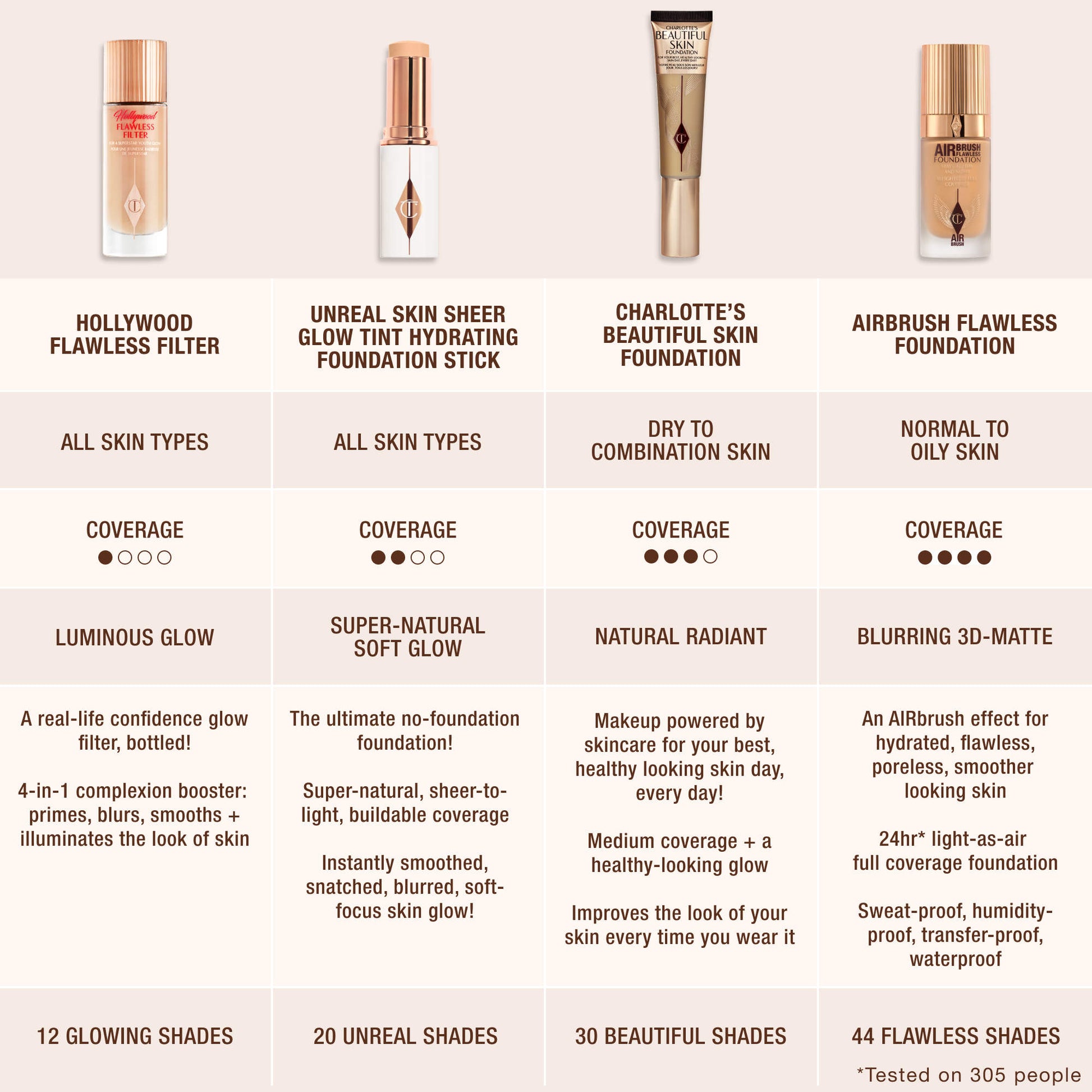 - Before applying Airbrush Flawless Foundation, always prime with Charlotte’s Magic Cream (sold separately). The miracle moisturizer quickly hydrates, smooths, and plumps the look of skin, creating the perfect canvas for makeup.