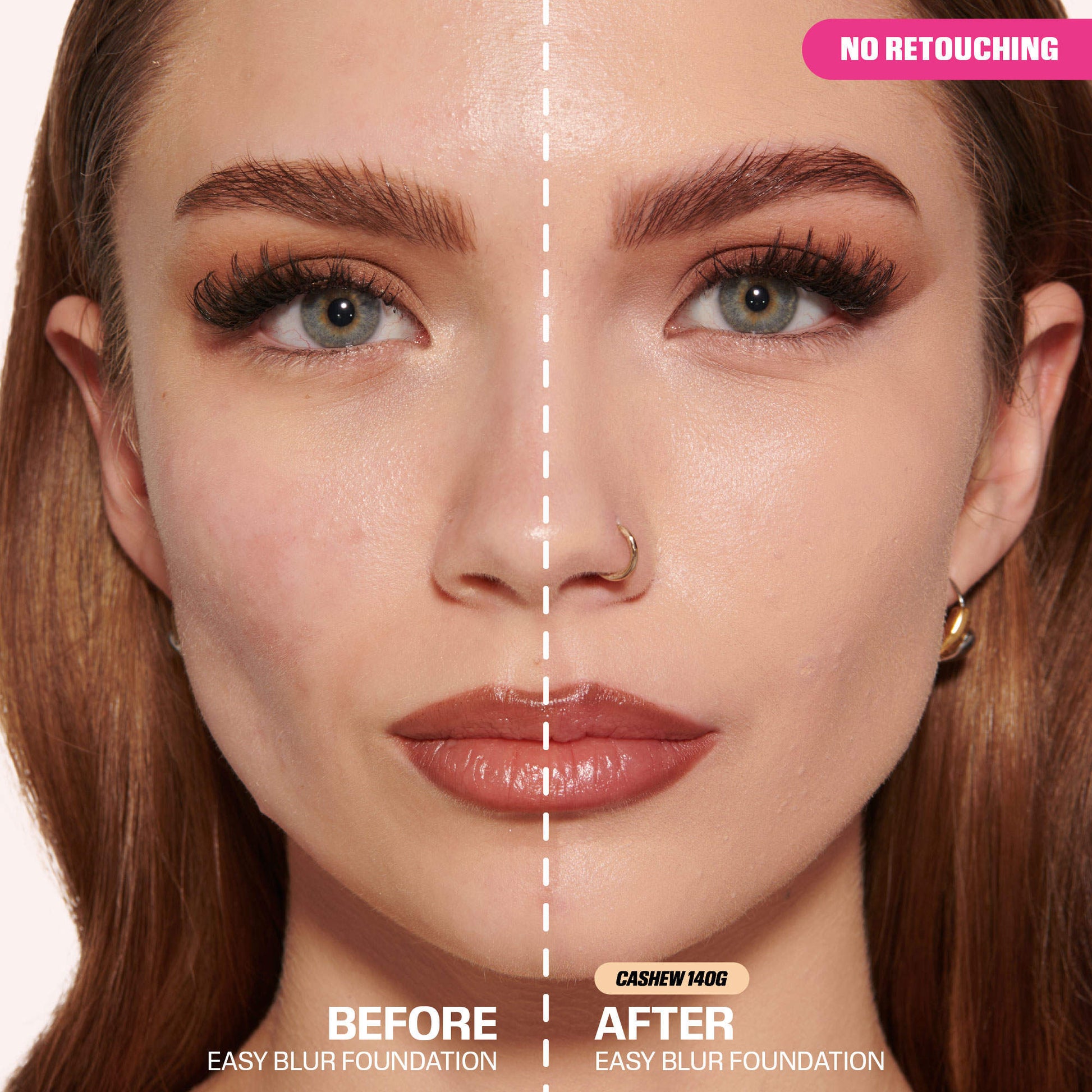 - Step 2: Apply Easy Blur Foundation with our Huda Beauty Base Brush (both sold separately) to effortlessly blend and buff into the skin.